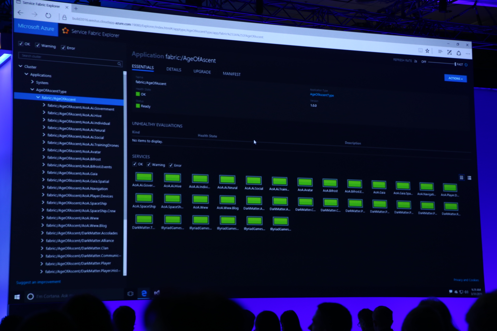 The idea here is to allow developers to focus on their code and let Microsoft take care of the orchestration and scaling. Using Service Fabric, developers can package and deploy their code without having to worry about the underlying server architecture. During today’s keynote, Microsoft showed how Service Fabric allows the developers of Age of Ascent, a real-time multiplayer game, to scale its microservices up and down as needed.