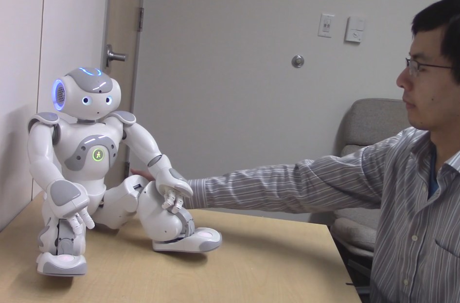 The researchers sat volunteers at a table with a Nao humanoid robot reclining casually on it. They were told (by the robot, in fact) that it was a vocabulary exercise focusing on terms for body parts. Volunteers were told by the bot to, for instance, “touch my ear” using their dominant hand, while the non-dominant hand remained on a skin conductance sensor that loosely monitored their physical state.