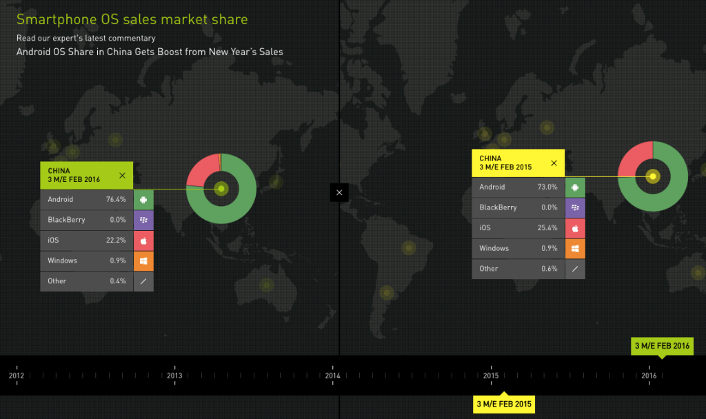 The latest smartphone sales data from Kantar Worldpanel suggests Apple had a tougher time shifting its devices over Chinese New Year than in prior years, with the market watcher noting no growth in marketshare for iOS over the three months ending February 2016 — the first time since August 2014 that Apple has not grown share in urban China, according to its data.