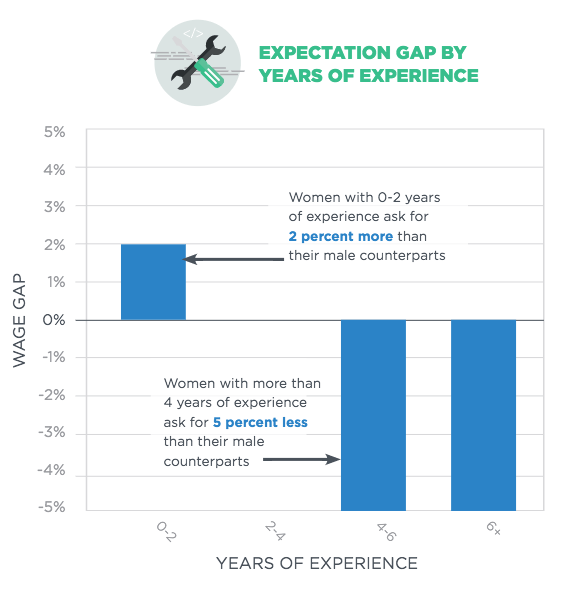 This is where the so-called expectation gap is likely playing a role, says Kirkpatrick. Women are asking for less because they don’t know what their peers are making or, in some cases, they question whether they deserve the same amount. (Pinterest engineer Tracy Chou shared her own personal experience with this issue in a piece on Quartz published earlier today.)