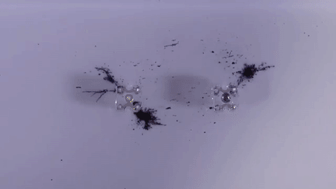 In that second gif, the wires are actually connecting those two LEDs and transmitting power to them. The longest chain so far has been 15 cm. And if the “wires” look a little furry, that’s because plenty of nanotubes will adhere in the attempt to get in line with the others. Patterned surfaces (to scrape the extra off, or guide it into other channels to self-assemble there) and multiple coils could fix that.