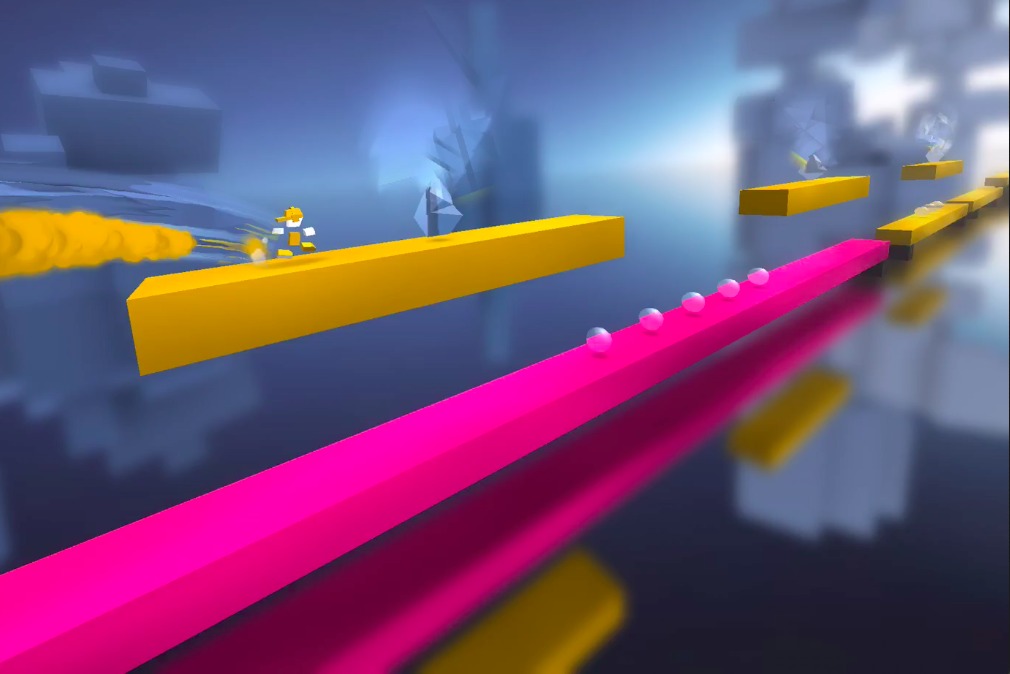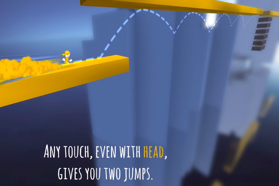 Mechanics-wise there are different types of jumping. There’s a jump, long jump, double jump, falling jump and falling double jump. You only get two jumps in a row unless you touch the ground to reset or you count or tap your head for one additional jump. The head tap is key or can be your doom when playing through levels without switching colors.