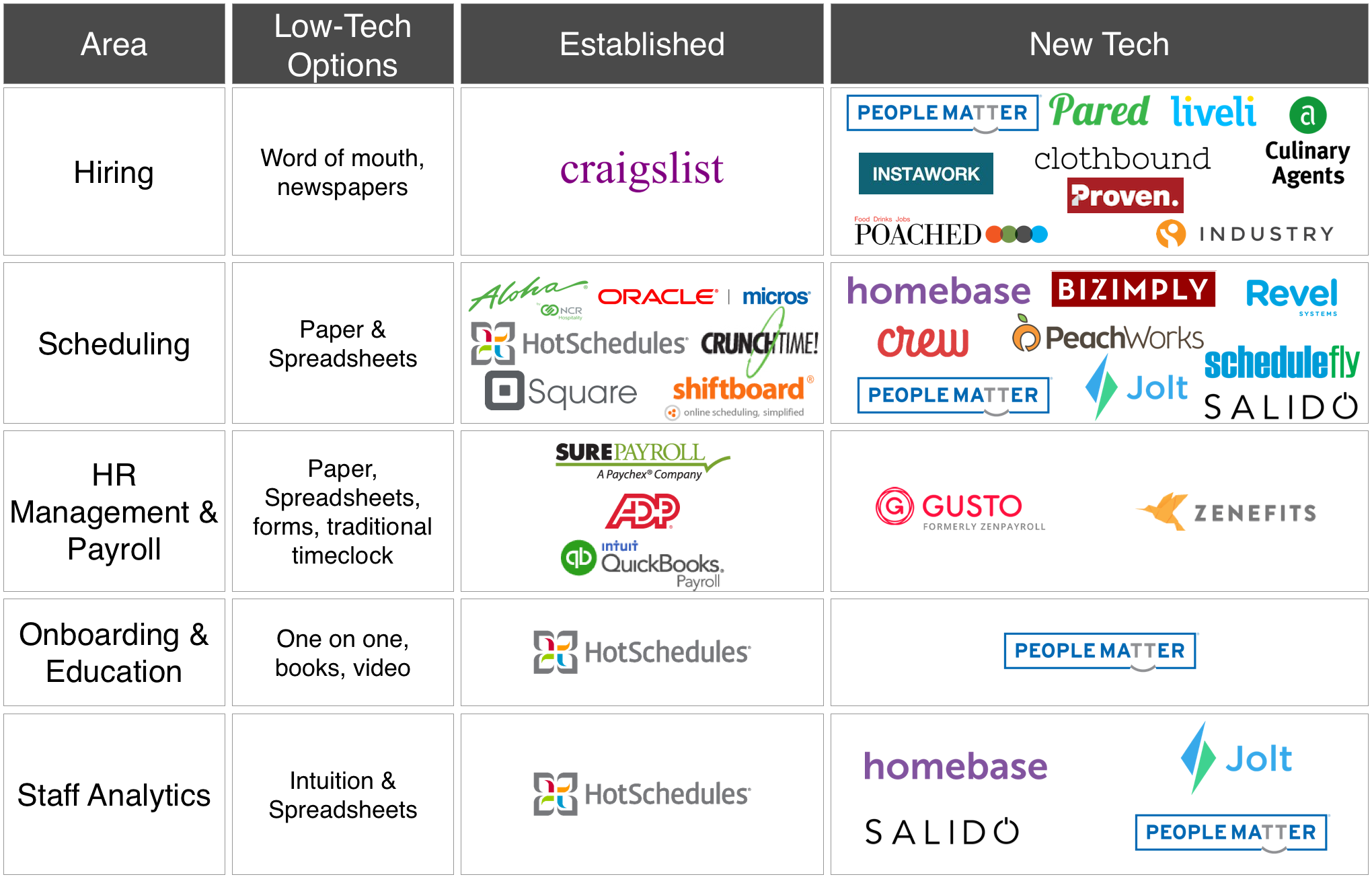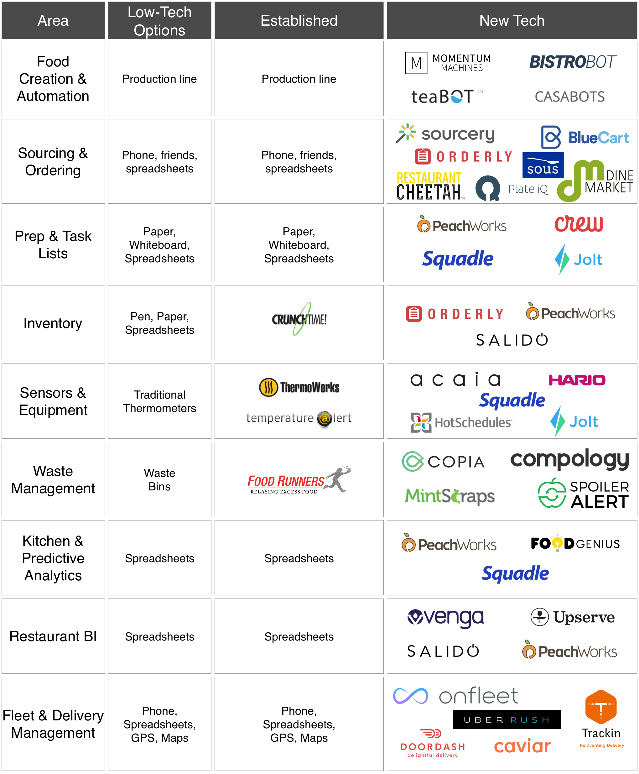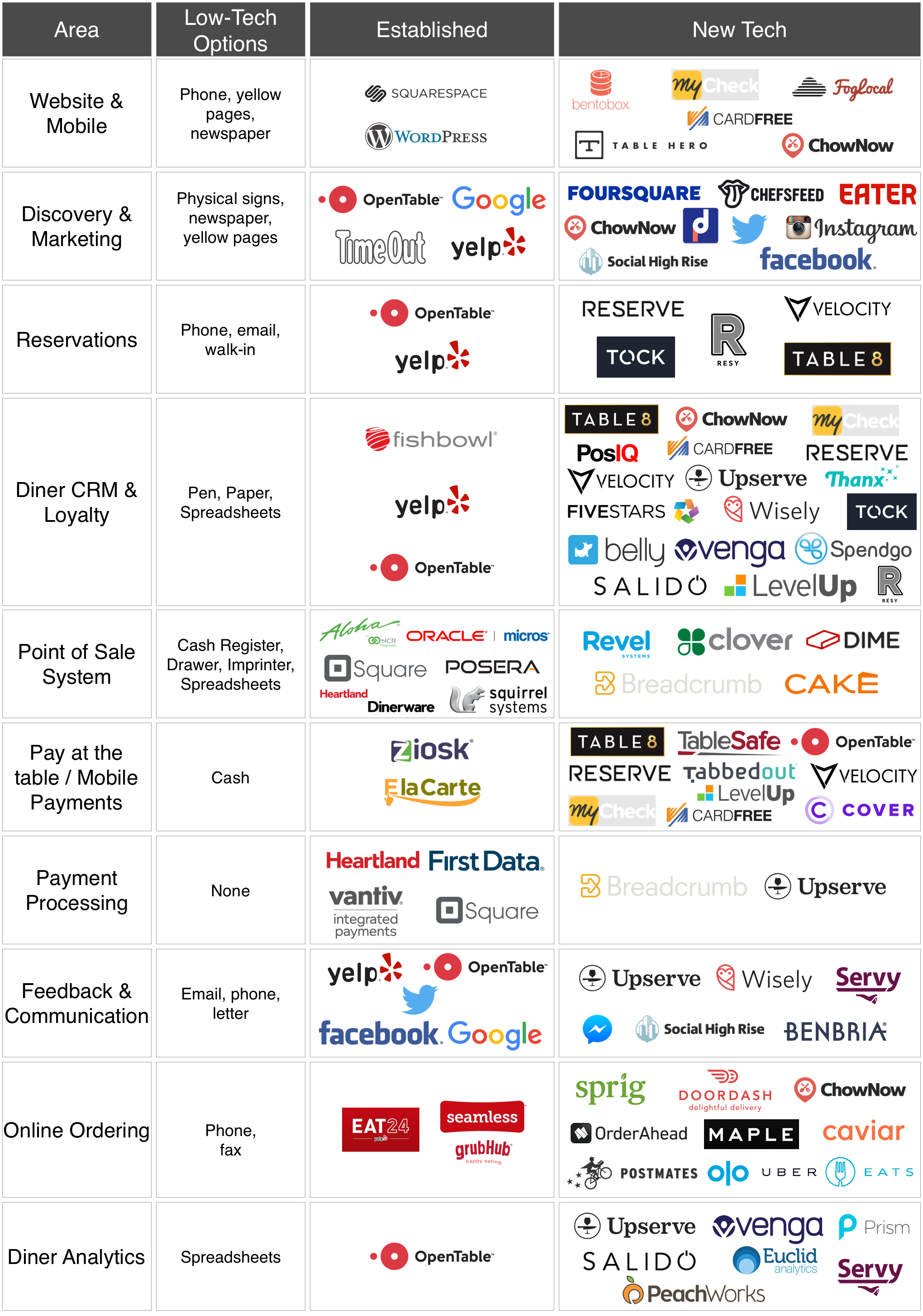To run smoothly, restaurants require several areas of operations — but there’s the catch, because restaurants are crazy places. Restaurant systems need to cope and adapt to a constantly changing environment. Of the many demands to running a restaurant, we’re focusing on restaurant-specific tech and products that price on recurring operating expenses; not real estate, design and capital expenditures for large equipment purchases or leases where generic tech or alternatives exist.