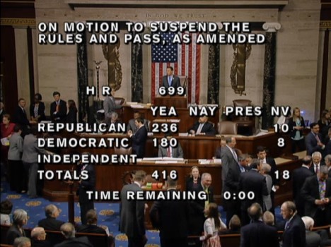Compromises, however, make popular bills, it seems: H.R. 699 had a whopping 314 co-sponsors. An oral vote after the back-patting party debate was all yea and no nay, but the official vote was put off until the end of other business so a proper tally could be done and the broad bipartisan support of the bill put on the record.