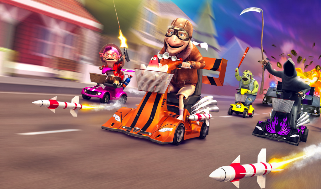 Set in the until recently peaceful retirement community of Sunny Pines, the game depicts not, perhaps, the way your grandparents would want to end their time on this earth, but then they probably weren’t battling against EMP-powered defibrillators while bombing down the road at 90mph either.