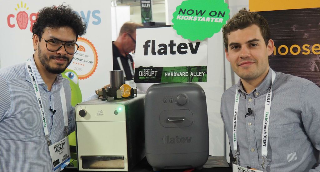 Ruiz came up with the idea for the Flatev back in 2010, and since then the company has scored two rounds of funding and teamed up with Fred Bould, a design firm that’s previously been employed by Nest and GoPro, to design the casing. Now the company’s a few days into a highly successful Kickstarter campaign and showing a working prototype today at Disrupt.