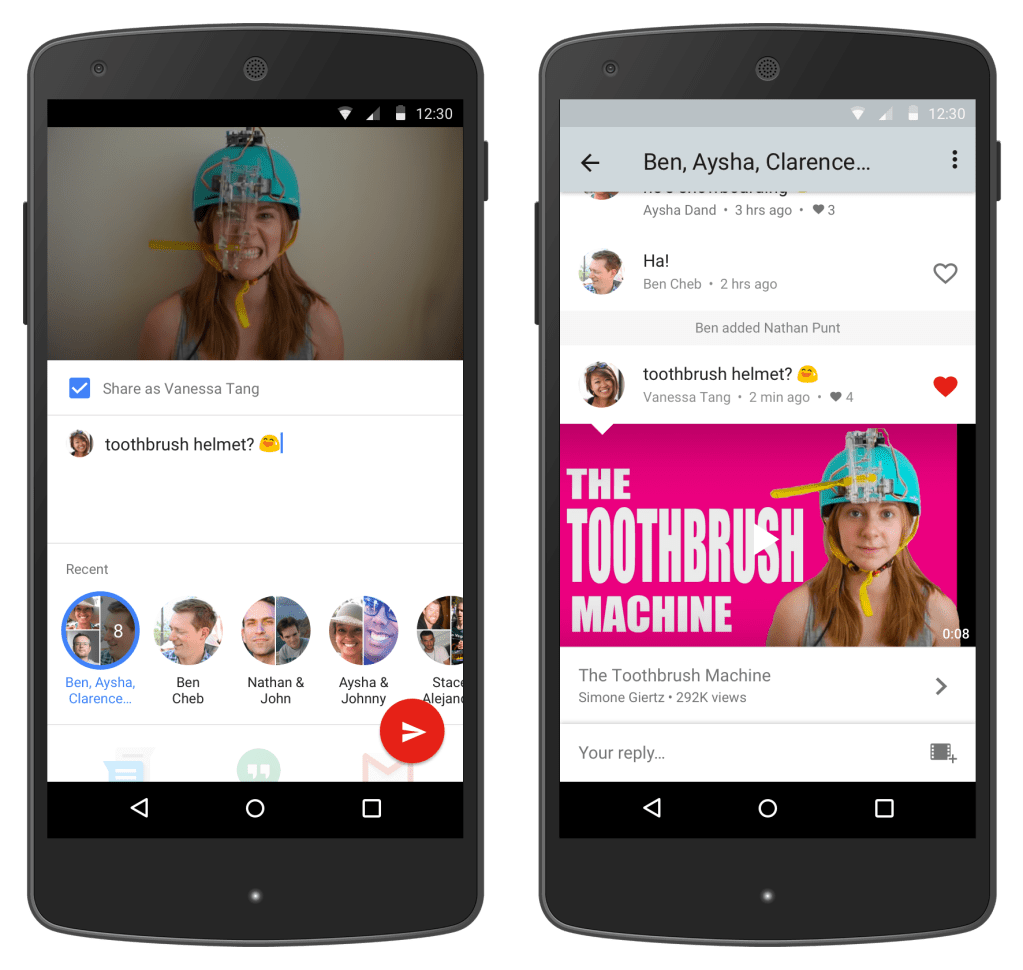The feature makes sense, as a lot of YouTube’s user base already shares videos with their friends – but over SMS, iMessage or another messaging platform. YouTube is smart to try to capitalize on that behavior, in order to increase usage of its own app as well as the time its users spend engaged with its service on mobile.