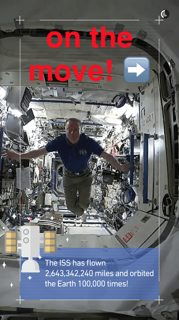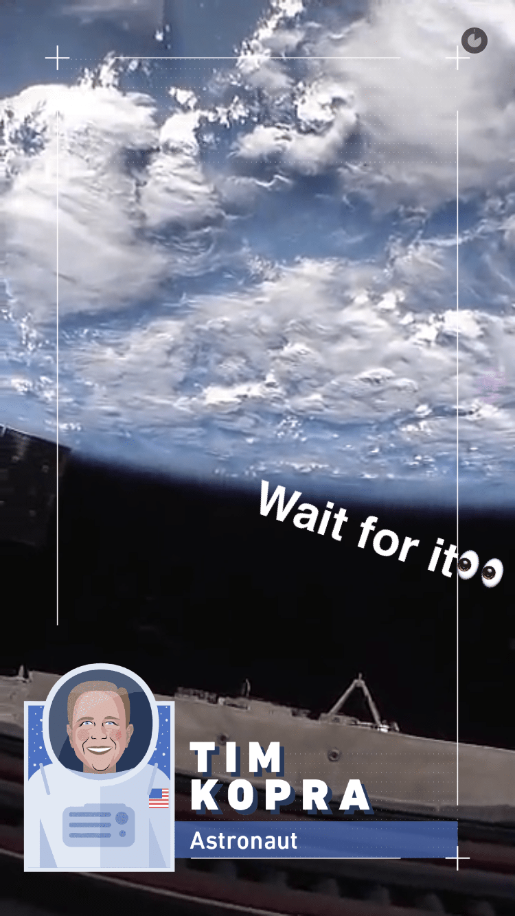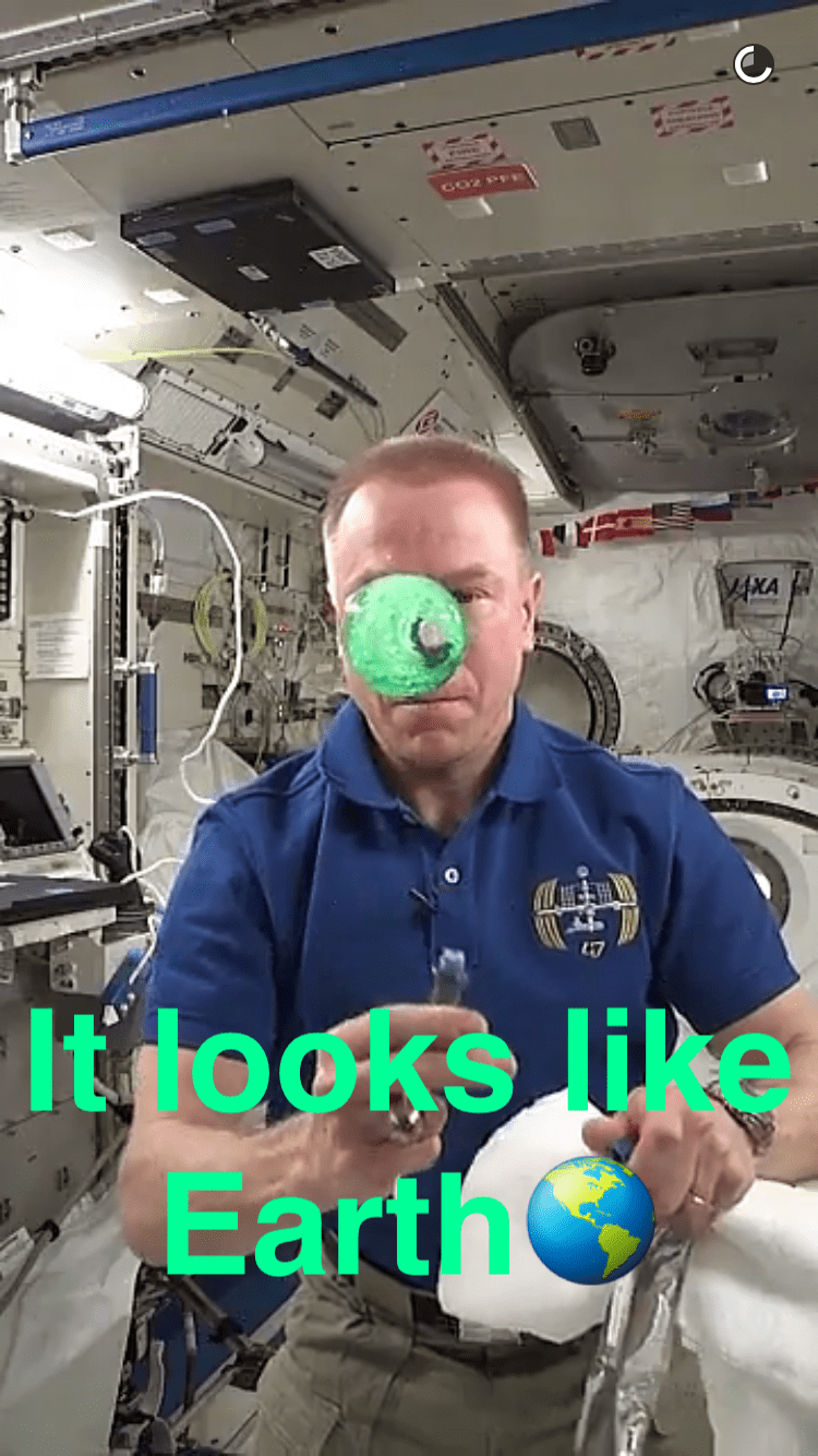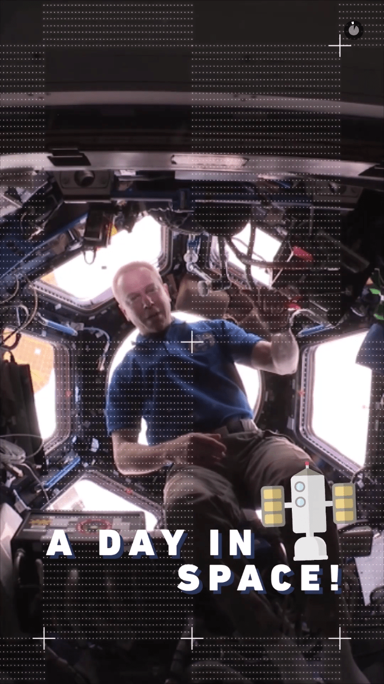 To celebrate that milestone, NASA teamed up with Snapchat for a space-themed Live Story called Day in Space. Up on Snapchat now, the feed features NASA astronaut Tim Kopra, Commander of Expedition 47, living and working on the International Space Station (ISS).