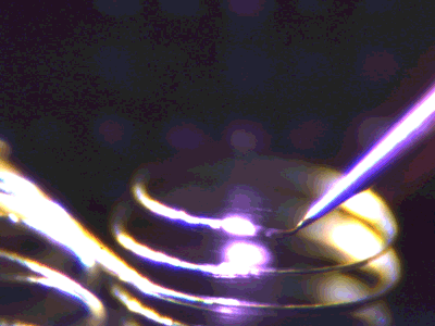 There’s no fancy name for the technology yet (unless laser-assisted direct ink writing counts), but the gist of it is this: A nozzle moves along a preset path sending out a thin stream of silver nanoparticles, while at the same time a laser follows its progress, heating the particles and solidifying them into a freestanding filament thinner than a human hair.