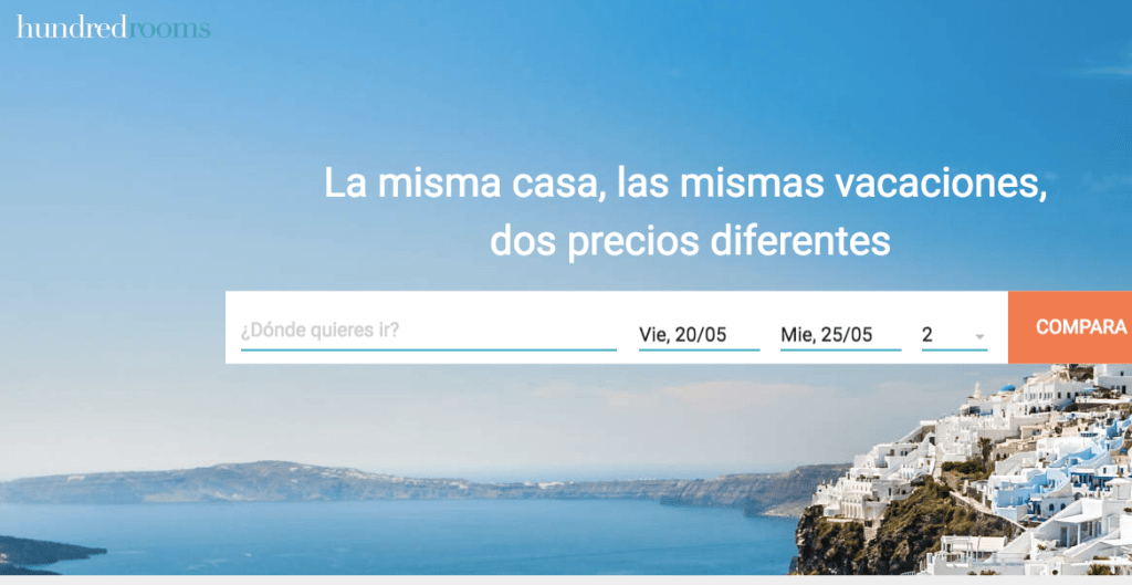 Hundredrooms claims to be the leading vacation rental search engine in Spain. Like its competitors, the company lets you search and compare prices for vacation rentals listed on sites such as Airbnb, House Trip, WaytoStay, Booking.com, GowithOh, 9flats.com and BeMate, amongst others.