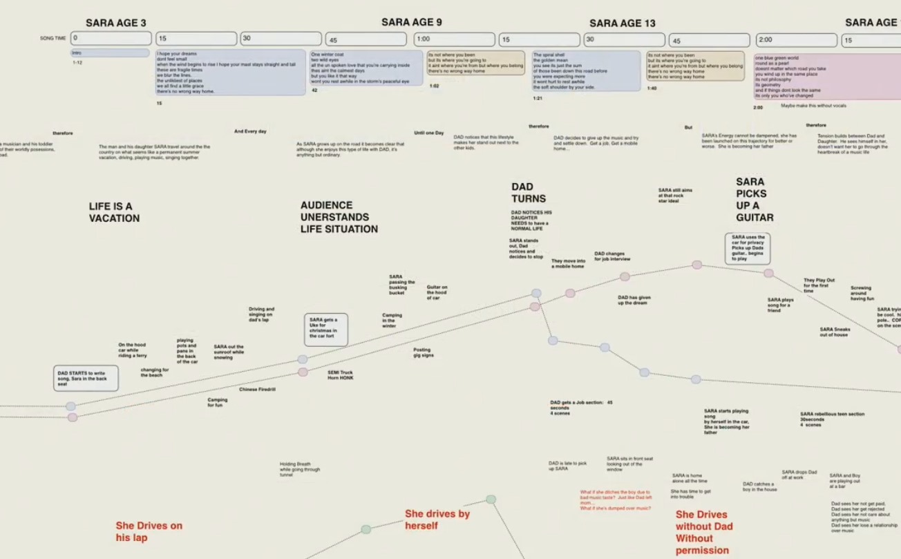 Osborne, a confessed “control freak,” decided to create a “road trip musical” and restrict the viewer to the passenger seat, from which vantage he could inconspicuously frame action by using the car’s natural geometric elements.