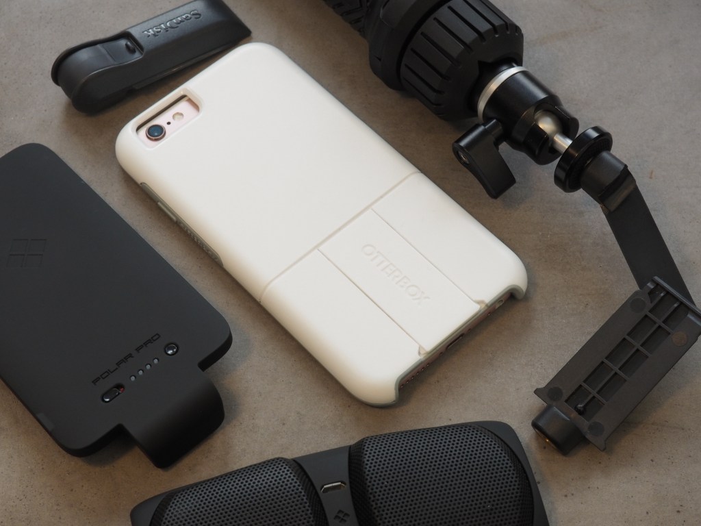 Or more precisely, the point is what slots into that spot: a battery pack, a selfie stick, a storage-extending dongle, Bluetooth speakers. The sky’s the limit, really, and OtterBox is coming out of the gate with an impressive set of accessories for the iPhone/iPhone Plus case helped along by some high-profile partnerships. Polar has created the lion’s share of the plug-ins here, but other partners include a card reader from Square, Olloclip’s four-in-one lens. Influx’s Wi-Fi booster and Seek Thermal’s thermal imaging camera.