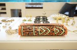 The pop-up shop displays bright blue and green Mola Salsa handbags, which are handmade from vintage textiles by a tribe in Colombia, and fabric tassel Shashi earrings put together piece by piece in New York’s garment district. The Shashi bracelets (at $74 each) have also been popular, according to Hearst.