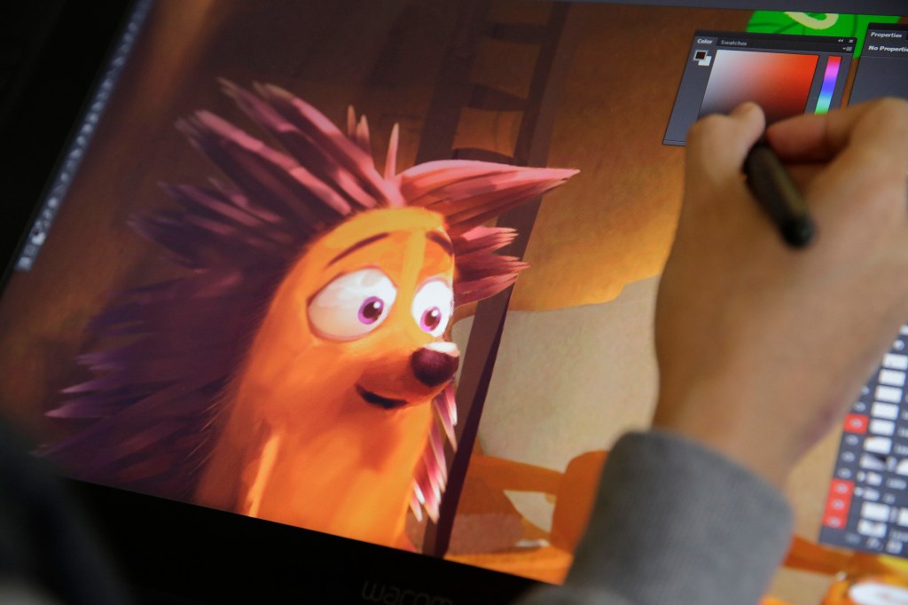 In “Henry,” the filmmakers decided to apply texture in only the most important parts of the film. The team spent a lot of time making Henry’s quills and fur look just right, but since the viewer only sees one side of him, his back is just empty space. He also has a simplified shape and limbs. Many of the features of his home are hidden in shadow or filled with less detail, because they just don’t matter as much.
