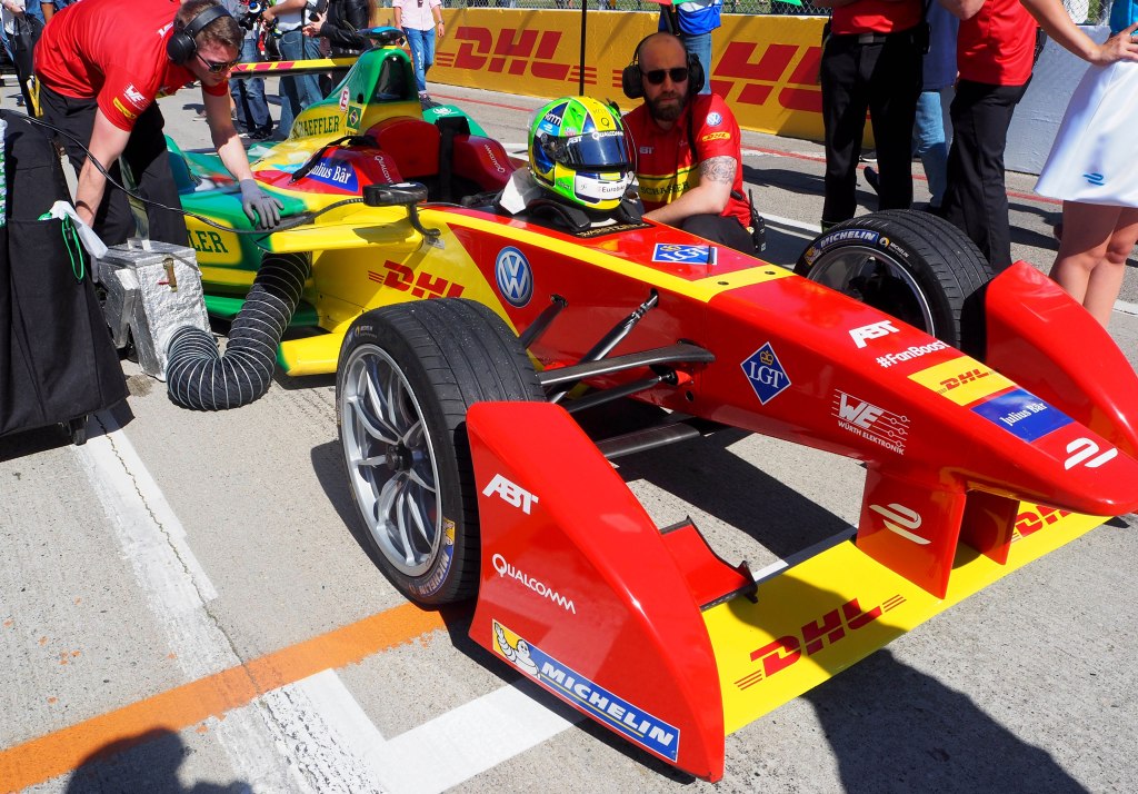 - Technical difficulties. Every driver has two cars. They deplete the batteries in the first one then pull into the pits about halfway through the race. They hop out of the nearly dead car and into one with fresh batteries to finish. Most Formula E drivers do this at roughly the same time, similar to how most teams in a NASCAR race will come in for gas within a lap or two of each other. At the 2016 Long Beach race, the feed to the giant screens went out, leaving the crowd with no information during the change. There were no cars on the track, and we couldn’t see what was happening in the pits. Also, it turned out that the feed shown to the spectators is the same feed used by the race announcer. If he couldn’t see the feed, he couldn’t give information either. He had to check the website to determine standings, which everyone was already doing on their phones in the stands.