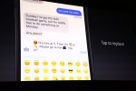 Finally, Messages is receiving a huge upgrade, starting with rich previews. If you send a YouTube link, you can play the video directly from the Messages app. If you open the camera, Apple now uses a mixed live camera and photo picker screen to save you a step. Emojis are three times bigger and Messages will suggest emojis based on what you type. You can also tap on words to replace them with emojis — Messages highlights words to replace once you launch the emoji keyboard. Now, everyone can become an emoji wizard!