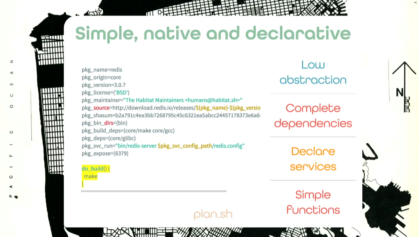 Habitat, then, tries to solve the question for how to best build, deploy and manage applications from the application perspective. Instead of defining the infrastructure, you define what the application needs to run and take it from there. The Habitat “supervisor” will handle deployment, upgrades and security policies for the environment you want to deploy in.