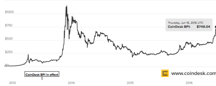 As of writing, Bitcoin is hovering around $745 per coin. It has only been worth this much twice before – once on the way up to the height of the Christmas 2013 bubble, and once on the way down.