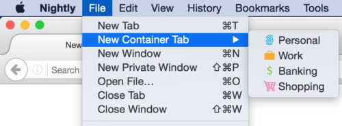 This new “container tab” feature, which is now available in the unstable Nightly Firefox release channel, provides you with four default identities (personal, work, shopping and banking) with their own stores for cookies, IndexedDB data store, local storage and caches. In practice, this means you can surf Amazon without ads for products you may have looked at following you around the web when you switch over to your work persona.