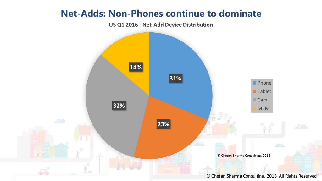 Mobile-industry consultants at Chetan Sharma noted that there were more cars added to networks than phones and fewer tablets than previously. According to analysts, smartphone penetration is at 84% in the United States, and new customer revenue is approaching zero. But connected cars are still new to the market, so as they roll off assembly lines and into garages, they’ll need to be hooked up to a network.