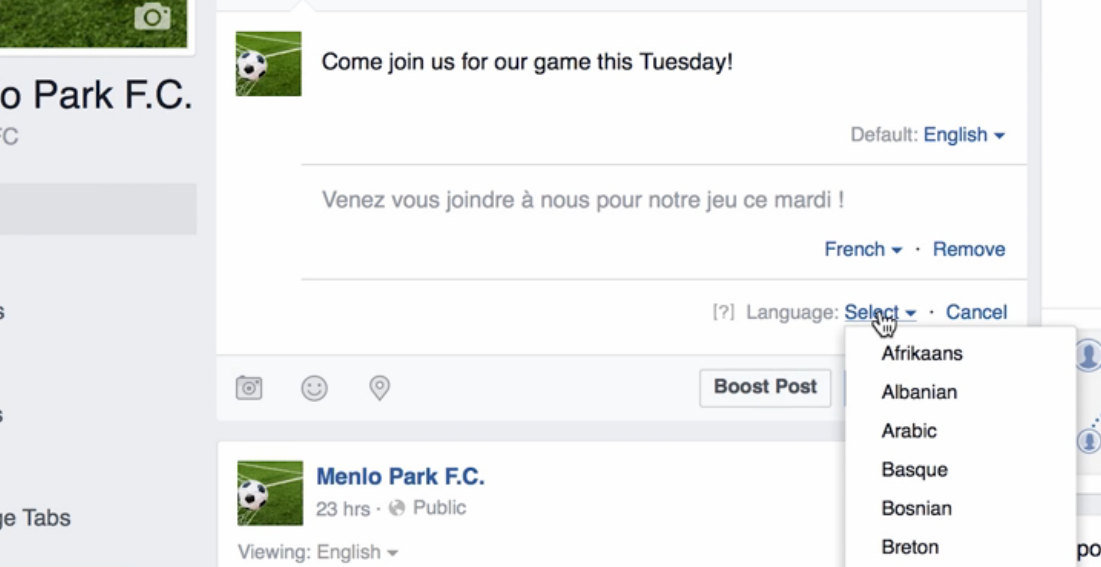 Here is how this works in practice: you simply write your post in one language and then look for the “Write post in another language” prompt in the composer. You tell Facebook what language that next version is in, write the translation, and either call it a day or add even more languages. Readers then see the text in their preferred language.