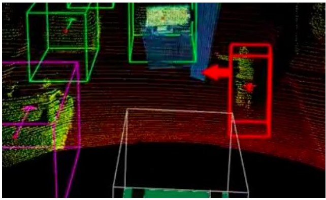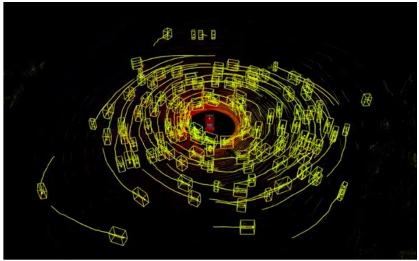 The LIDAR and other sensors on the vehicles can detect bikers in any direction, or even every direction at once, as this illustration shows.