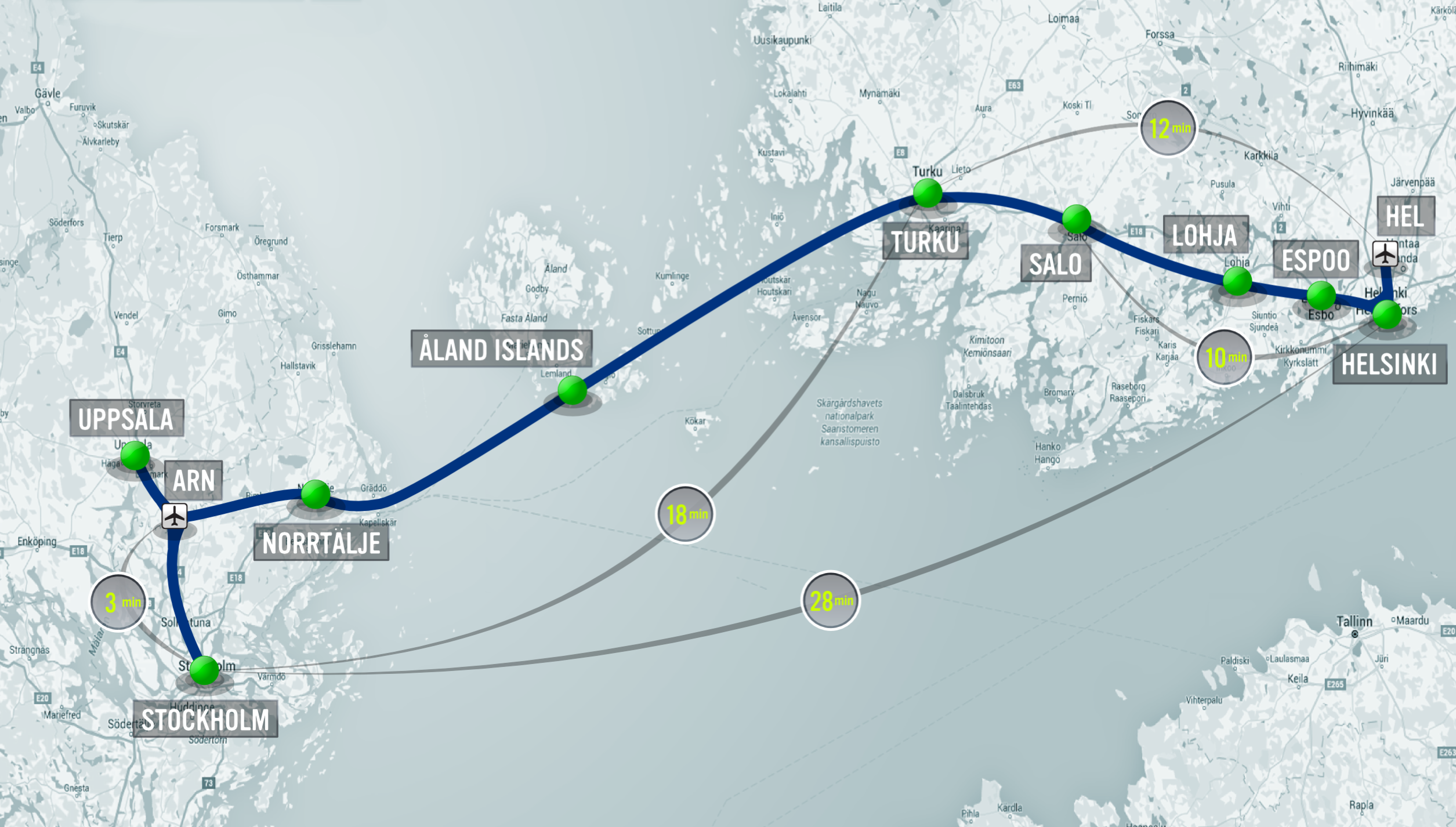 The business case (via Gizmodo), created in partnership with engineering firm partners and consulting firm KPMG, is meant to walk potential investors through the value proposition inherent in a proposed Hyperloop route connecting Helsinki and Stockholm. Hyperloop One leads the slide deck with the money slide combo: a before-and-after showing current travel times of three hours, thirty minutes (including travel time to/from airport, giving yourself a decent window so as not to miss the plane, etc.) by air, vs. a total trip time of 28 minutes for the proposed Hyperloop installation.