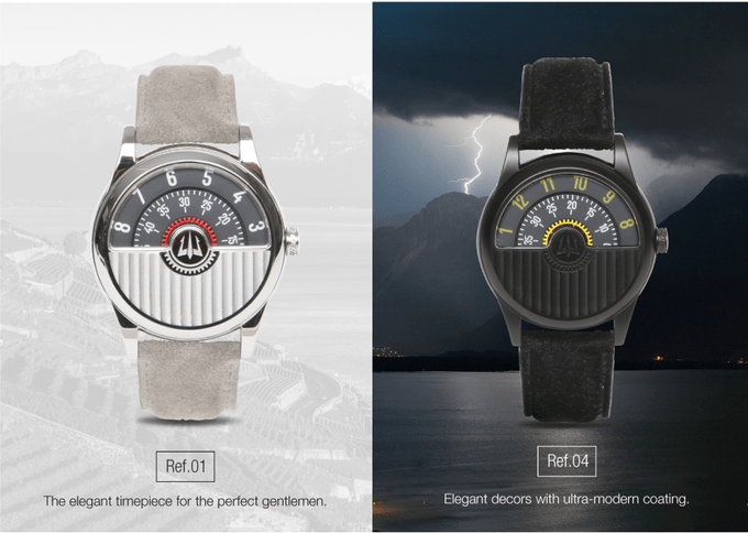 Art Mécanique is a Swiss company that is crowdfunding a watch with a face made of concentric circles. The bottom half of the face is covered by a metal plate and you tell the time by looking at the top of the watch.
