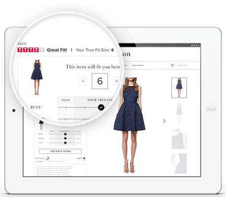 The startup partners with big retailers like Nordstrom, Macy’s and Kate Spade to guide online customers to order the right size and style for their measurements. True Fit uses an algorithm based on self-reporting and purchase history to figure out what items fit the way a person likes.