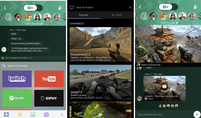 The service is designed as a kind of digital clubhouse for hanging out with your buddies. It already lets users jointly watch media like YouTube or Spotify, but now it is adding Twitch — which Amazon bought for around $1 billion in 2013 — to the mix. Twitch users, as we reported earlier this year, watch more videos each month than the average YouTube user does.