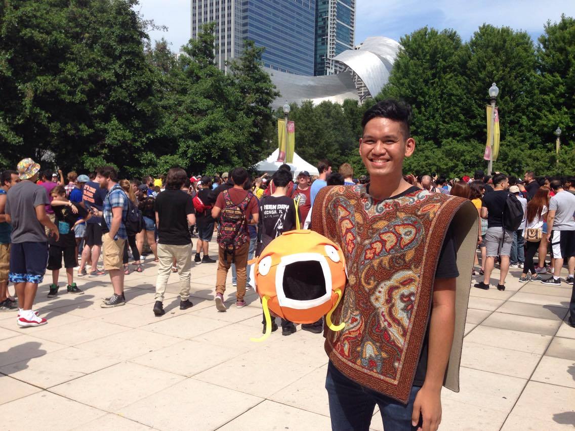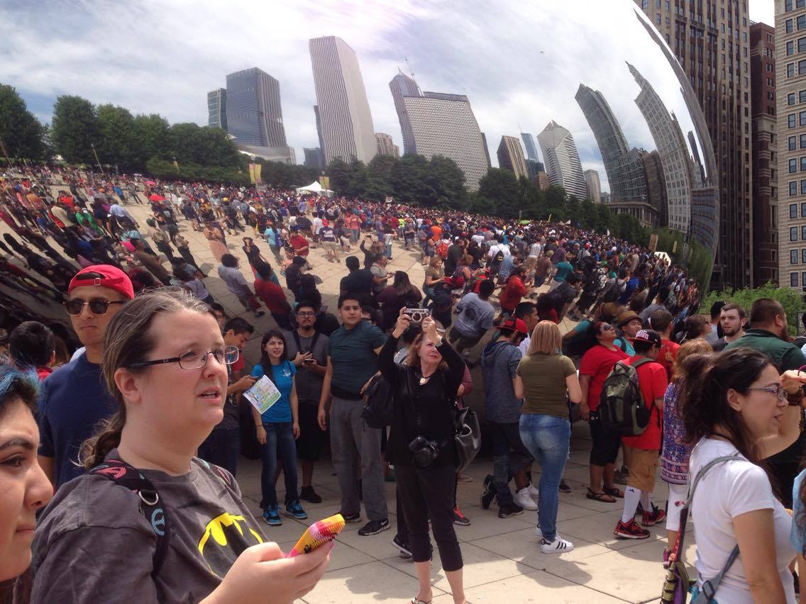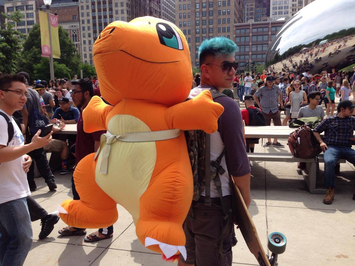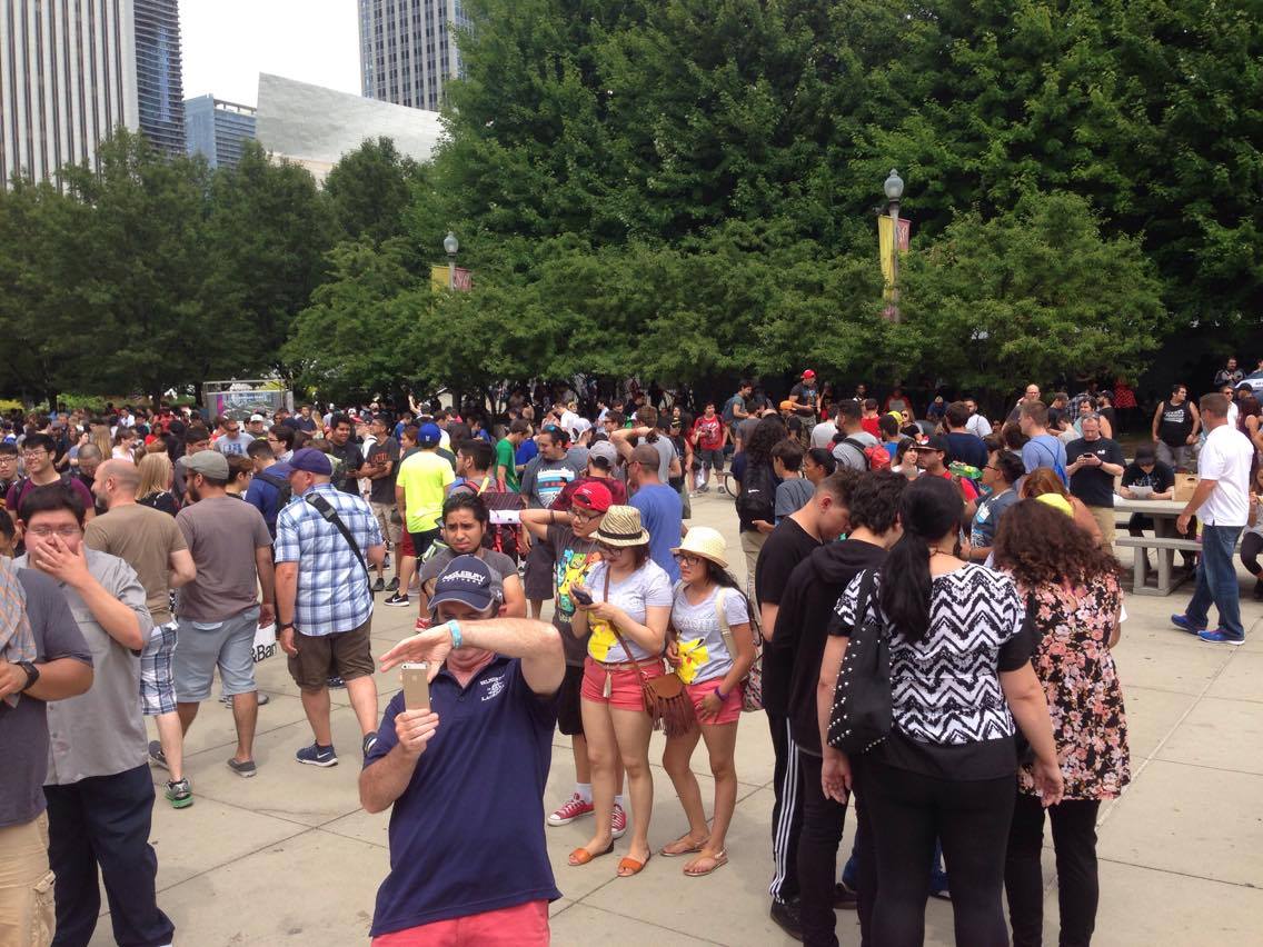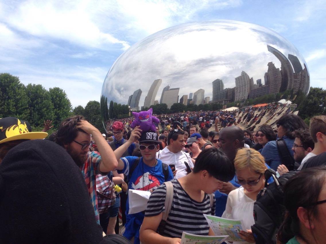 About 5,000 people showed up at Millennium Park on Sunday for probably one of the first massive Pokémon Go player gatherings since the game was released in the US a couple of weeks ago. Teenagers, artists, cosplayers, young adults and families with children spent a couple of hours or more chasing Pokémon near Cloud Gate, the silver sculpture — nicknamed “The Bean” — that is also a popular Chicago landmark.