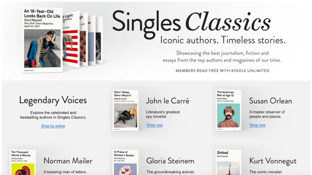 For those who subscribe to Kindle Unlimited, Singles Classics will be available for free.