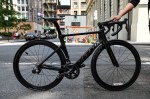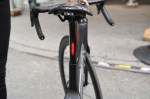 In other words, this is a very fast racing bike, via components alone. Pair that with the sleek military-grade carbon fiber frame, fork and bars and the result is a bike you can lift with a single hand. It even has a rear brake light! Yes, that impresses some people, while also being a critical feature for night riding.