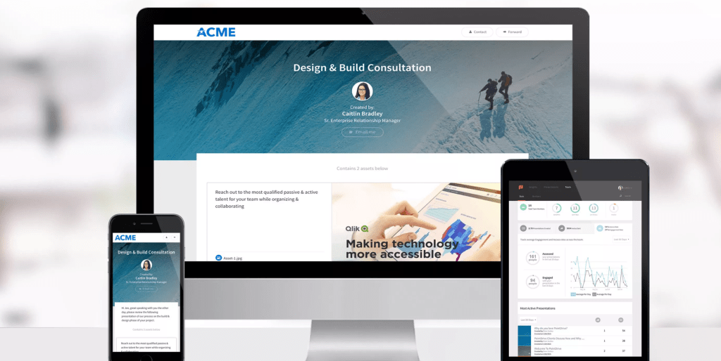 PointDrive’s app essentially offers users a web page that functions as a common workspace: salespeople can upload content that can be shared with their clients to better illustrate an advertisement or an exciting PowerPoint to show what great ROI they’ll get.
