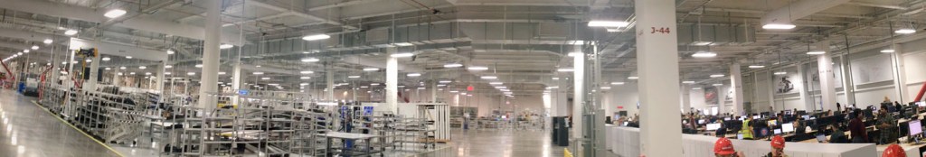 To our right, separated from the factory floor by just a hip-height dividing wall, are the designers. Their project? The rest of the Gigafactory.