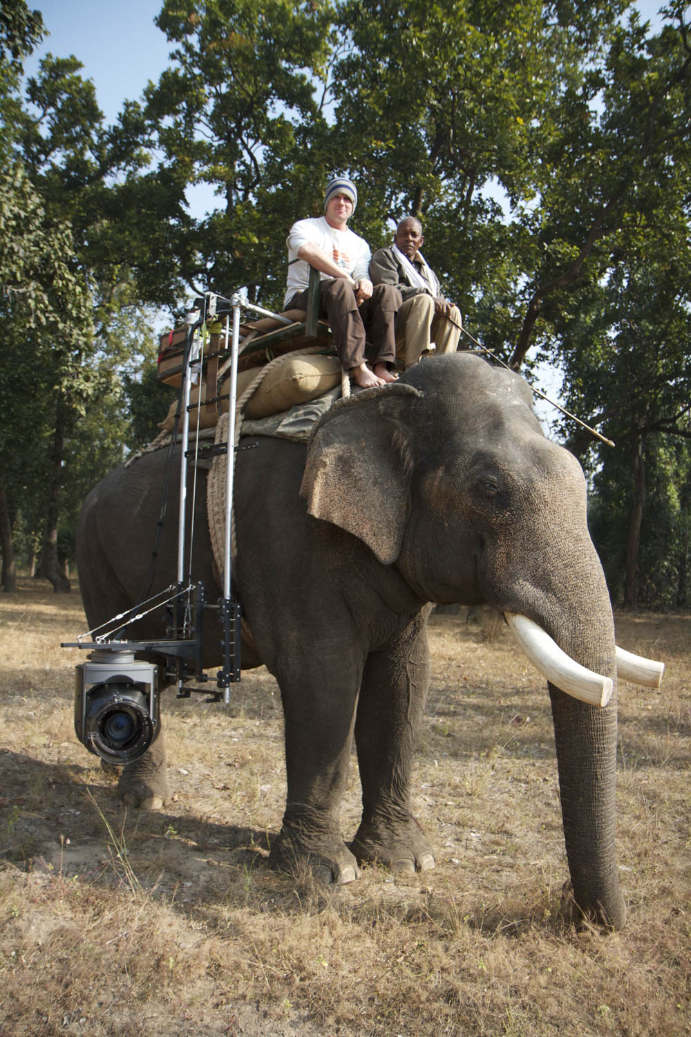 One innovation was to build a mount enabling the team to film… from an elephant. Which is every bit as bonkers as it sounds, but it isn’t completely “just because we can” — it turns out that it’s the perfect way to film tigers, because unlike drones, helicopters and juicy camera-men, tigers basically ignore elephants.