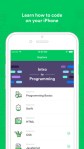 Each lesson in Mimo begins with a short sentence, a code snippet you interact with and motivational feedback that displays after each interaction. The app is gamified as well, meaning players collect points, badges and other achievements as they progress in the app.