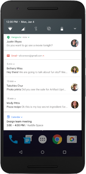 The most obvious change is in the notifications system. Their look is now closer to Google’s Material Design guidelines and, more importantly, most applications now allow you to take an action (archive an email, for example) or respond to a message right from the notification. Nougat also bundles together notifications from the same app, so you can, for example, see all the messages with the same topic bundled into one expandable notification.