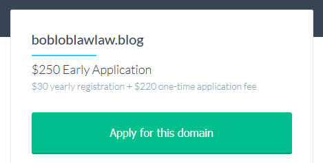 On November 2, the “landrush” period starts — that’s when generic words and names go up for registration. As with any TLD, there will be some “premium pricing for higher-value names,” so don’t think you’re going to get dog.blog for pocket change and flip it for millions to Petco.