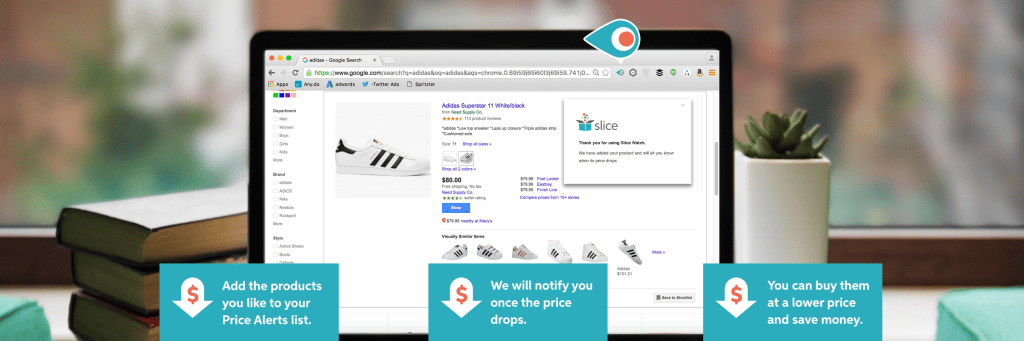 Slice, a company best known to consumers for its mobile shopping assistant that helps you find the best deals, track packages, organize your receipts, and more, is out today with a new service aimed at helping online shoppers save. Called Slice Watch, its latest app lives in your web browser instead, allowing you to track price drops on items you find online.