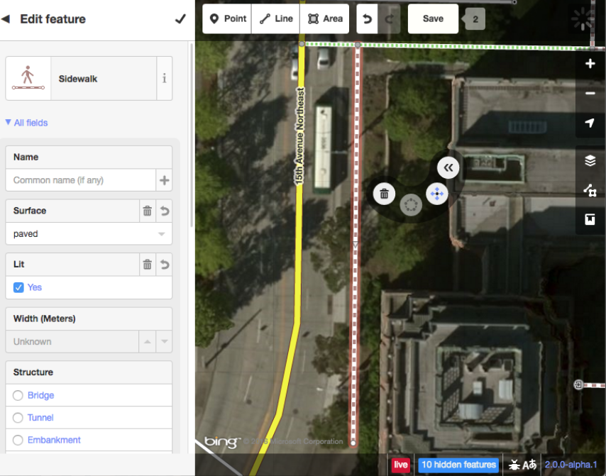 The solution isn’t a neural network or computer vision system, though: For now, it’s just elbow grease. The team created a custom editing app for OSM and established a set of schema for tagging the features they deemed most important: curb cuts, crossings, sidewalks and associated attributes like width, condition and so on. They presented their work at the State of the Map conference and later ran a “Mapathon” to test the effectiveness of their toolset; in a day, their volunteers annotated much of the University District.