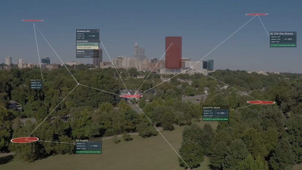 Instead of giving drone operators a first person view with video cameras, PrecisionHawk uses what it calls a low altitude traffic and airspace safety system (LATAS) to help drone operators automatically avoid air traffic or any other obstacles during flight. That system is powered, in part, by air traffic data from Harris.