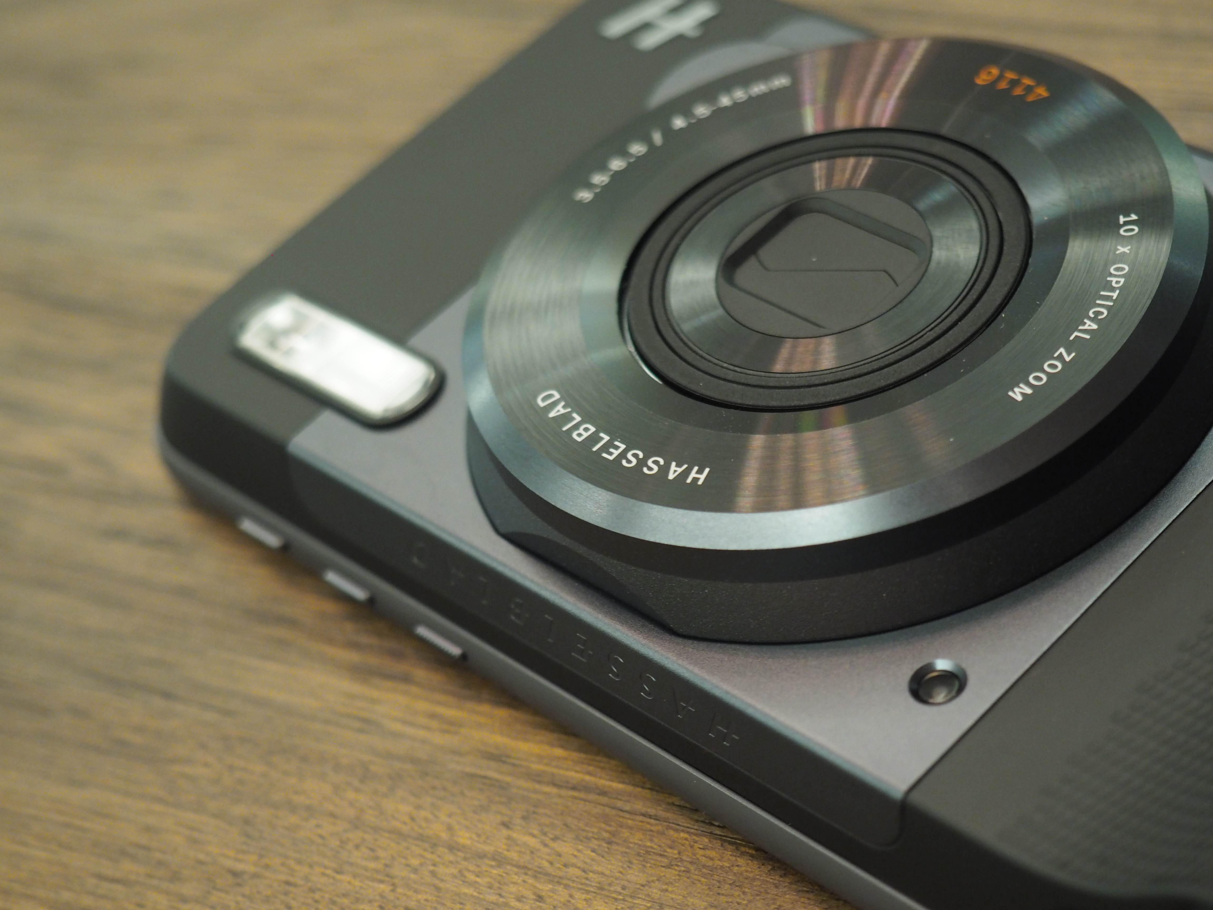 Given everything we know about our friends at Hasselblad, it’s no surprise, really, that the modular backing is a really lovely looking bit of hardware. It’s got a classy matte black finish and a textured bump grip that makes it possible to hold the thing with one hand (though I found myself holding it around the edges, as you do a standard phone).