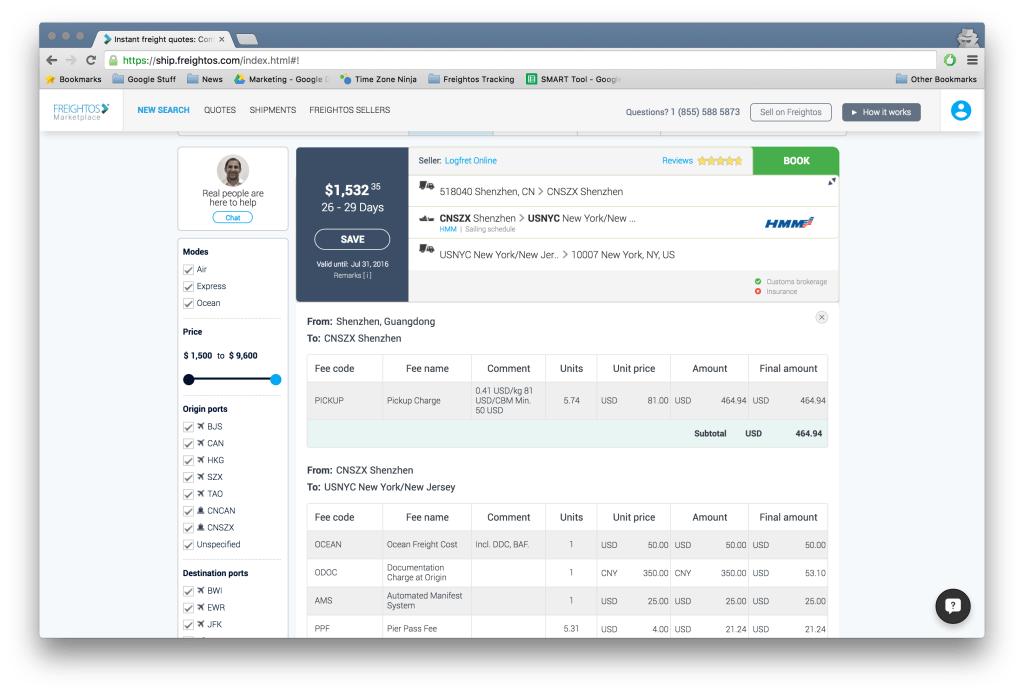 As we noted late last year, when the startup raised $14 million in Series B funding, the average freight quote typically has 20 associated fees: the trucking fee, the ocean liner fee, the fuel fees, the handling fee, the piracy risk fee, the seasonal surcharge, the hazardous surcharge, the port fees, and so on.