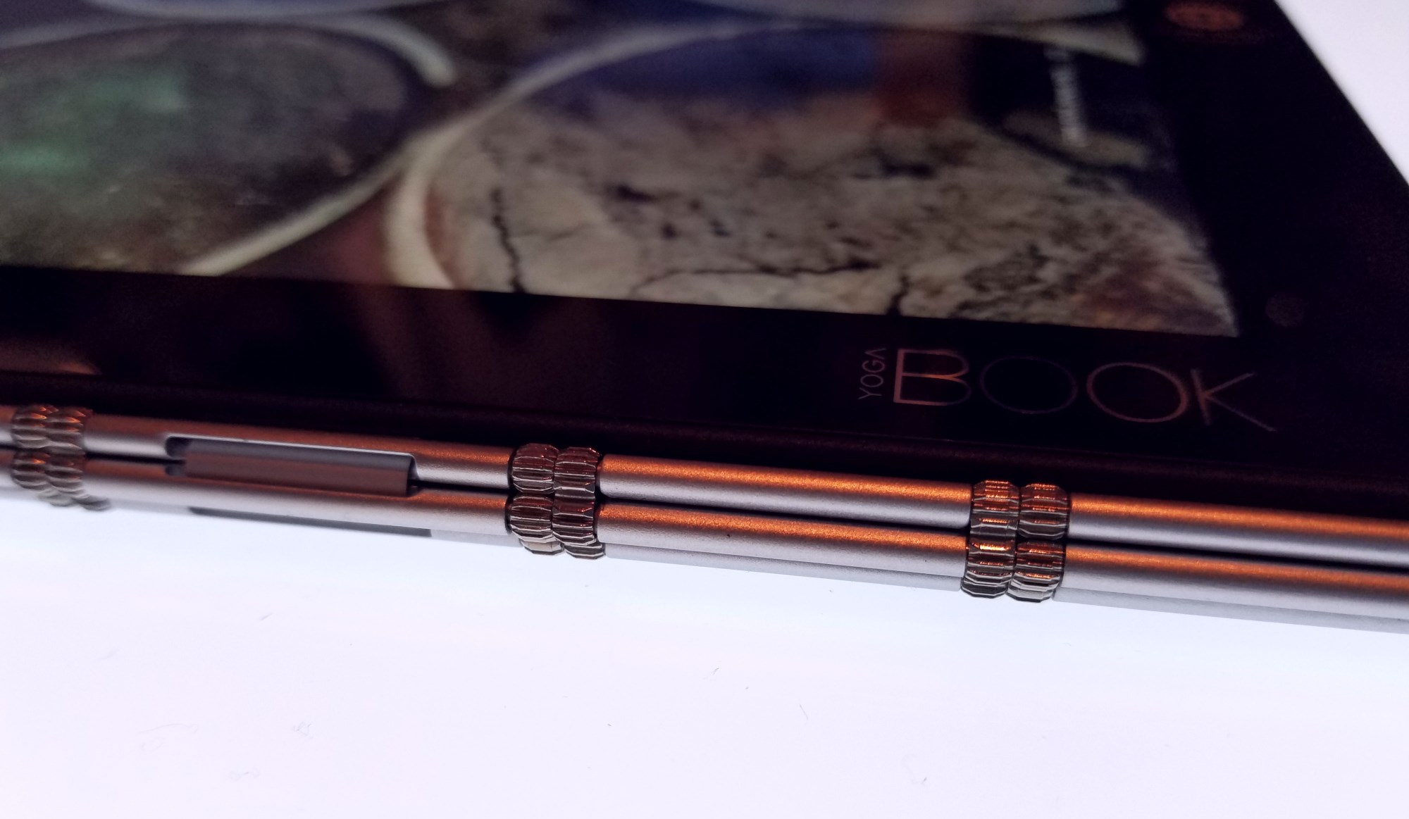 Fast-forward 7 years. The tablet and notebook formats are merging, and the hardware is growing more sophisticated in how that happens. Flipping and rotating Yogas have shown up over the last couple of years, but they never quite enticed. Then the Surface Book showed up, with its unique (and uniquely flawed) hinge, hinting at a future version where the crumb-accruing gap between top and bottom half would be eliminated. Enter the Yoga Book.