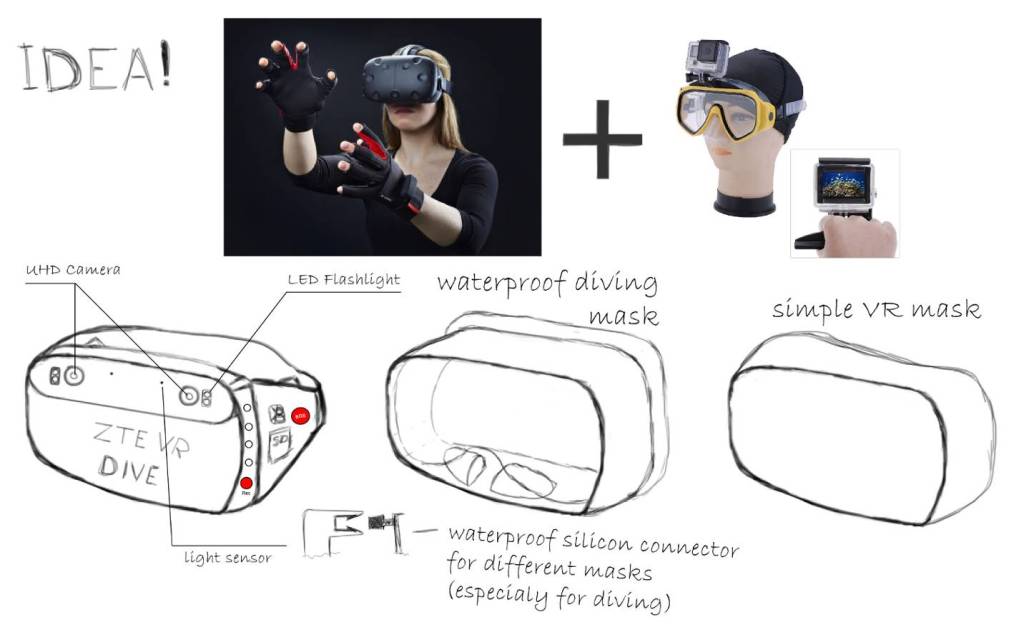 The third concept offers that ever-so-rare bridge between augmented reality and scuba diving. It’s a mask with cameras and a display built it to bring graphics to diving, so users can, say, put a shark in their swimming pool. It undoubtedly presents the most potential safety concerns of the three finalists — but that makes it the most exciting, right?