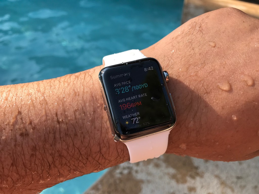 When you’re done with your swim, you turn the digital crown to unlock the screen and the Watch sends pulses of sound through the speaker, impelling the water out of the speaker holes in a spitting motion. This clears the speaker chamber so that audio coming out of the Watch isn’t muffled. It’s clever, and it works exactly as advertised.