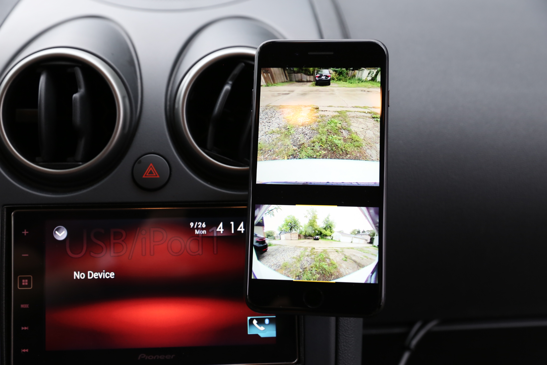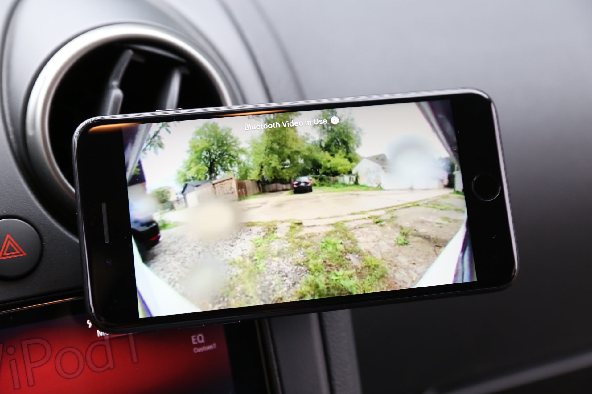 Once connected, the RearVision app in landscape will show you a full-screen view of what the cameras in the license plate holder is seeing, with a 175-degree viewing angle. You can toggle between the full fish-eye experience, or a warp-corrected view that fills the display corner-to-corner with the space behind your car. You can also pivot the view up or down to get a better look at more of the sky, or more of the ground as needed.