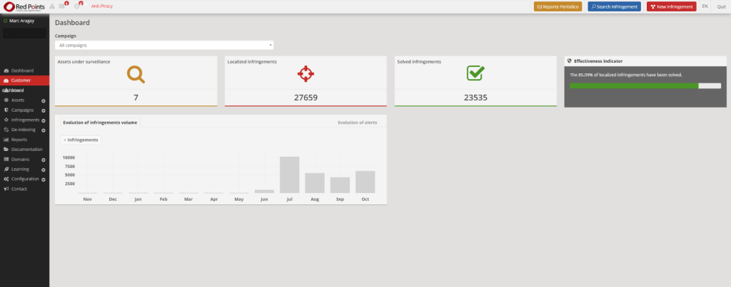 The startup, which was founded by a lawyer, Josep Coll, back in 2011, has built tech that continuously crawls known piracy hotspots and counterfeit goods outlets online on behalf of its clients to identify possible infringements.