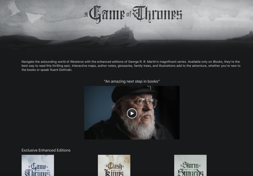 “We’re now entering a new period in the history of publishing,” said author George R.R. Martin, in a statement. “The digital book gives readers the ability to experience all this rich secondary material that had not been possible before. These enhanced editions available only on iBooks include sigils and family trees and glossaries. Anything that confuses you, anything you want to know more about, it’s right there at your fingertips,” he added.
